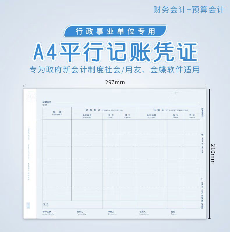 用友凭证打印纸A4双摘要凭证纸 A4平行记账凭新政府会计制度2019用友政务软件与行政事业单位适用KPJ501
