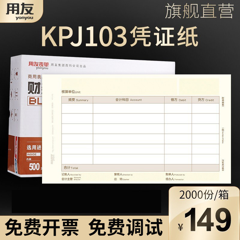 用友KPJ103凭证纸西玛发票版激光金额记账凭证纸打印纸 KPJ103S 用友软件适用t1 t3 t6 u8 u9 NC t+ 好会计