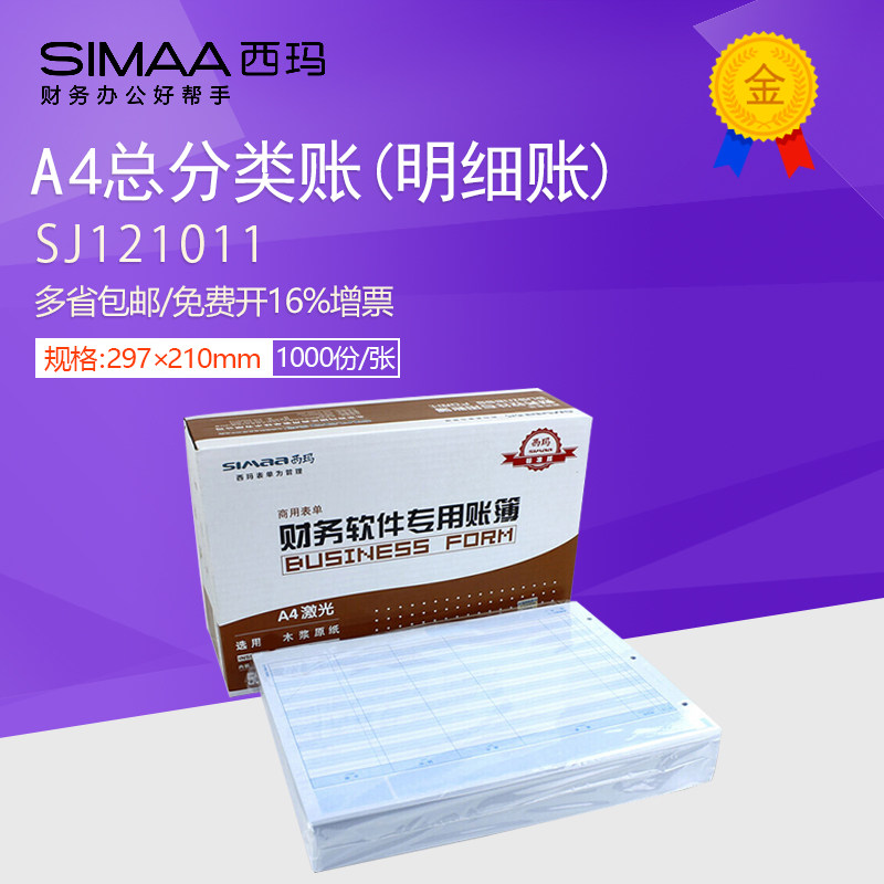 西玛凭证打印纸A4总分类账明细账SJ121011适用于用友软件同KZJ101