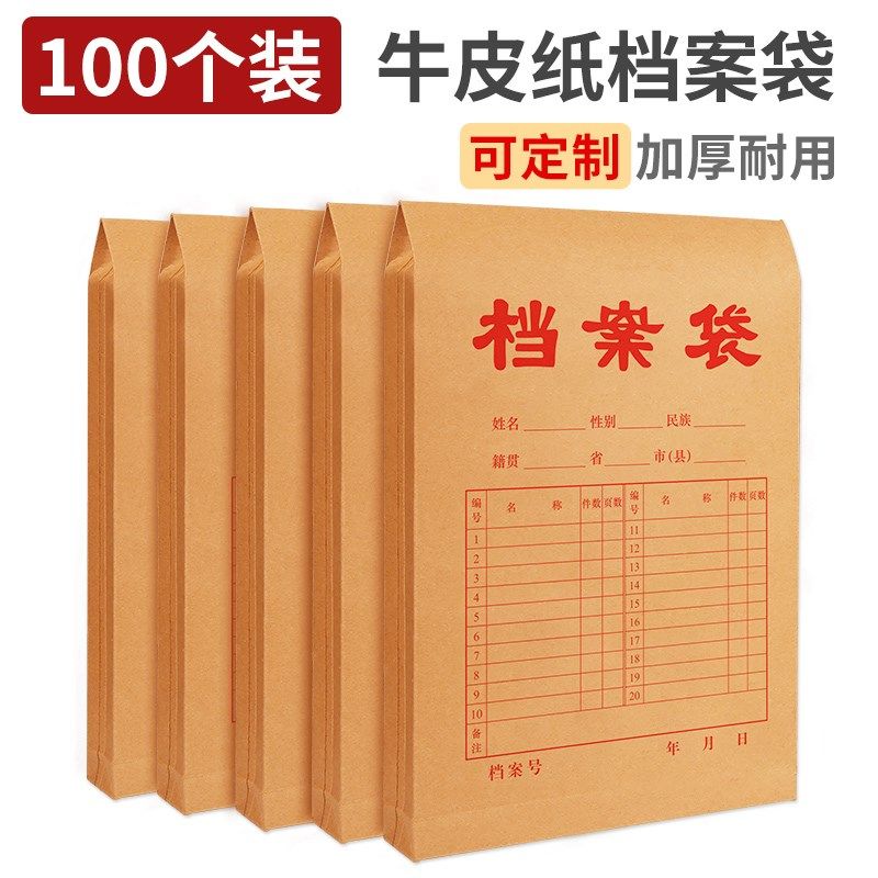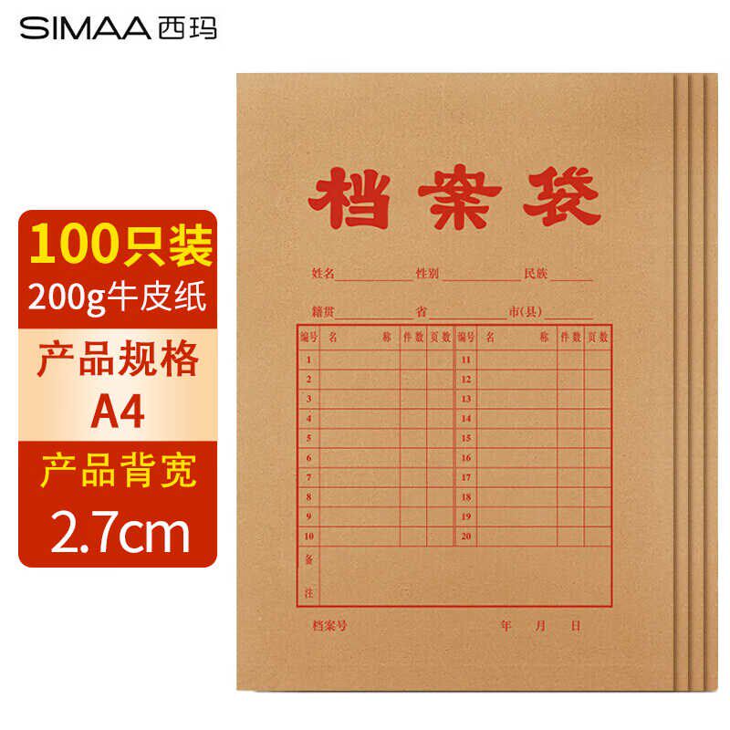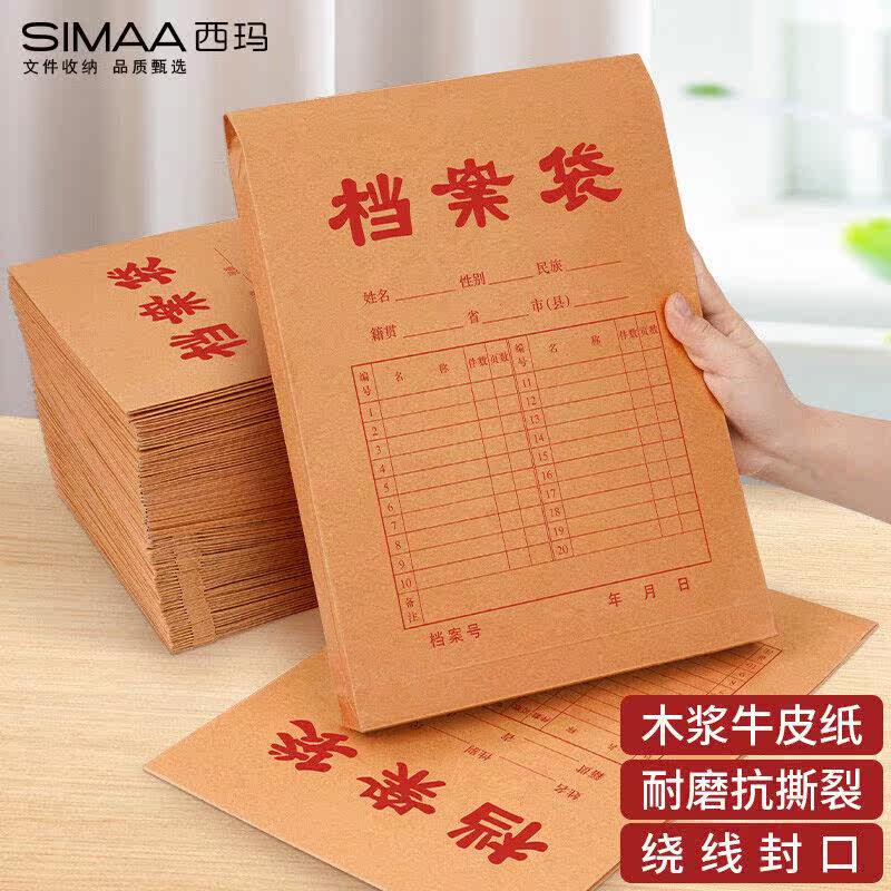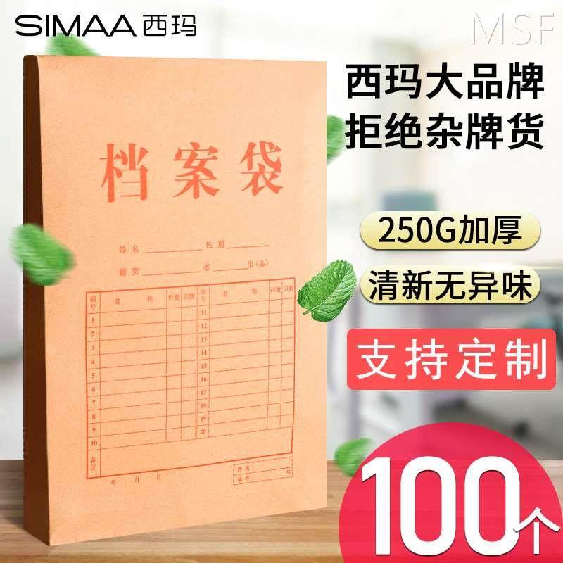 西玛50/100个加厚a4档案袋牛皮纸文件袋学生卷宗封皮纸质合同投标