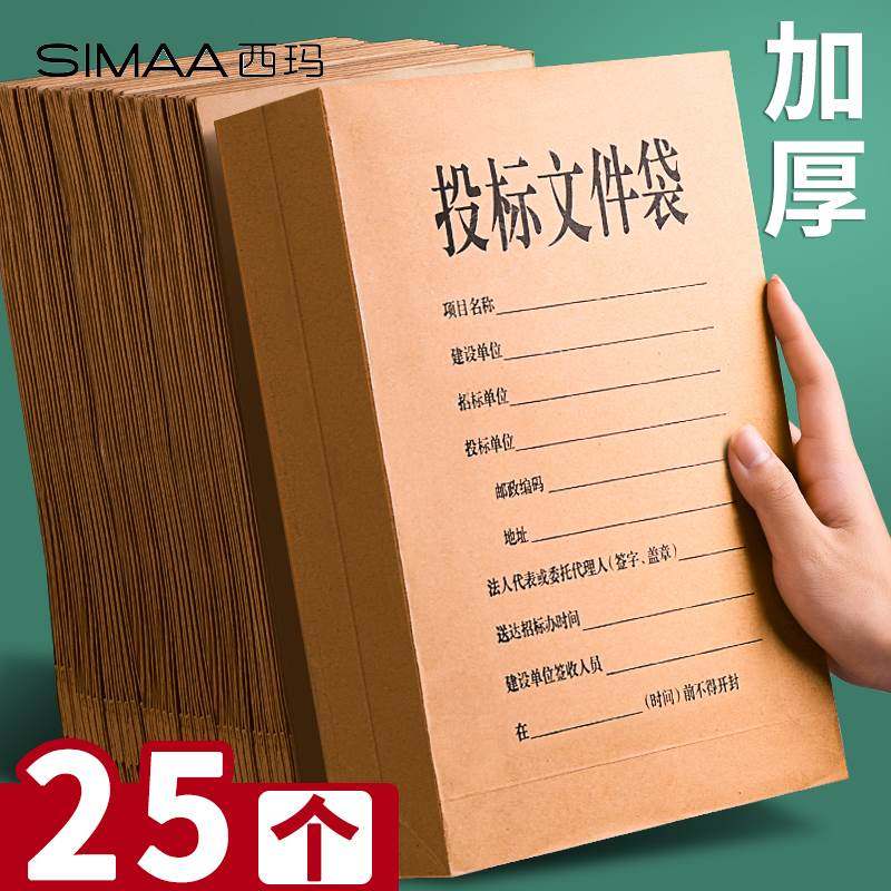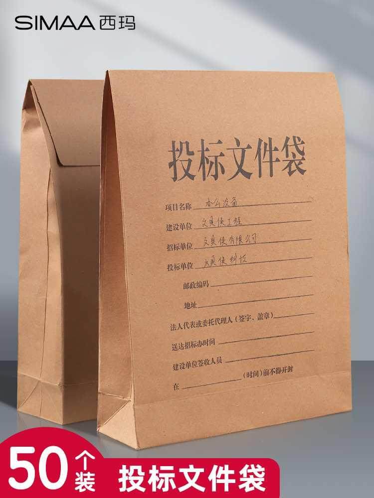 西玛加厚投标文件袋a4牛皮纸档案袋6cm纸质资料袋8cm加大容量文件袋4cm文件夹招标用办公用品袋子投标专用