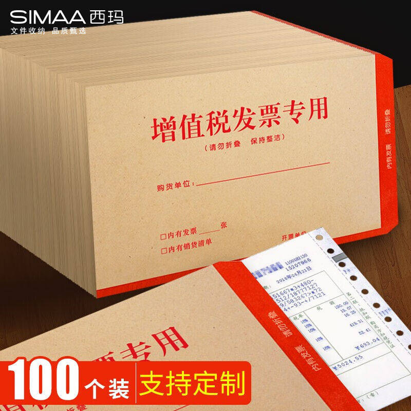 西玛(SIMAA)100张加厚增值税发票专用信封财务票据袋牛皮纸发票