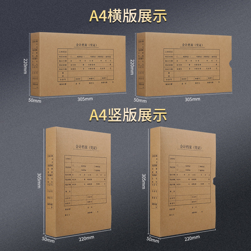 西玛会计凭证档案盒发票A4A5硬纸板凭证封面加厚牛皮纸整理盒子财务用品收纳票据单据双封口侧开口记账凭证盒