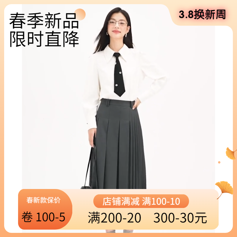 商场同款雅美诗凡黎百褶半身裙2024春新款女小众设计感3F1140181