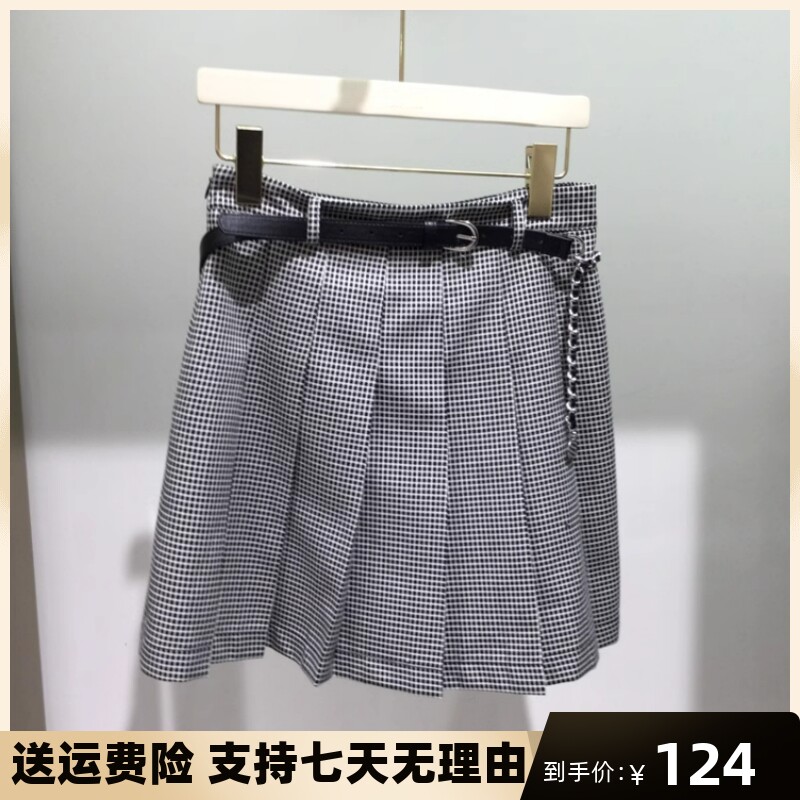 诗凡黎德玛2024春季新款气质黑色格纹百褶短款半身裙女3F2240201