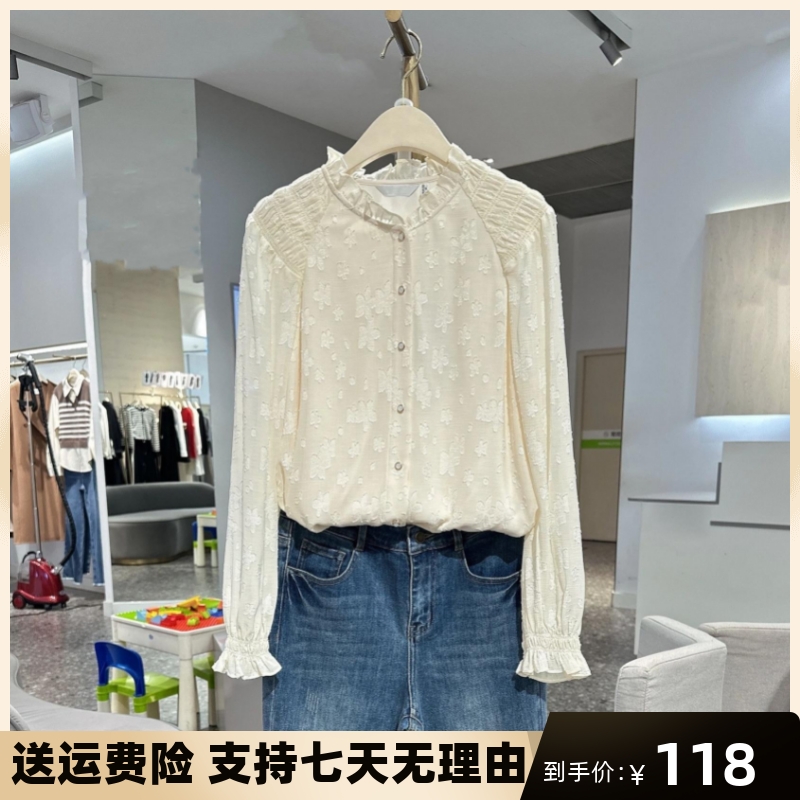 诗凡黎德玛2024春季新款气质百搭白色木耳领长袖衬衫女3F2120221