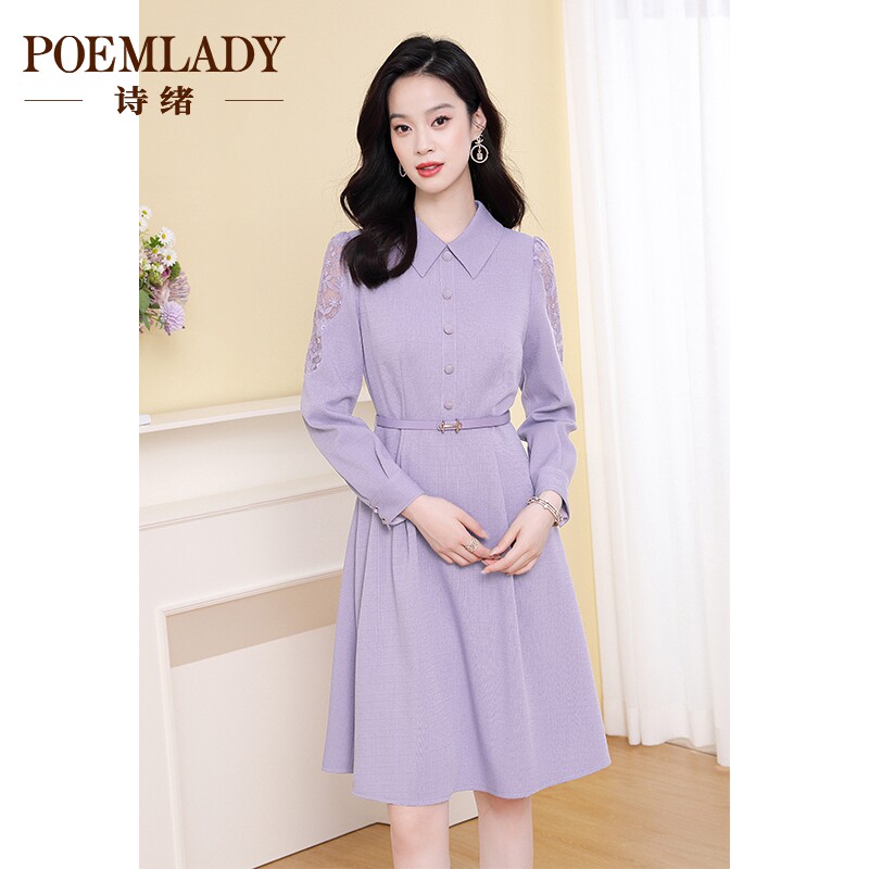 诗绪紫色浪漫小香风衬衫连衣裙女秋季2023新款长袖中长裙62928