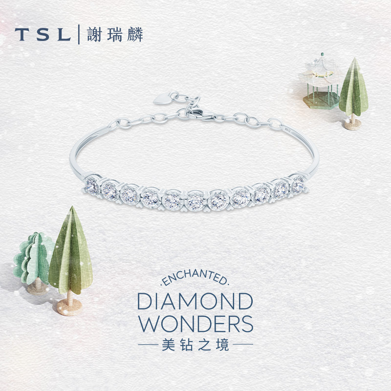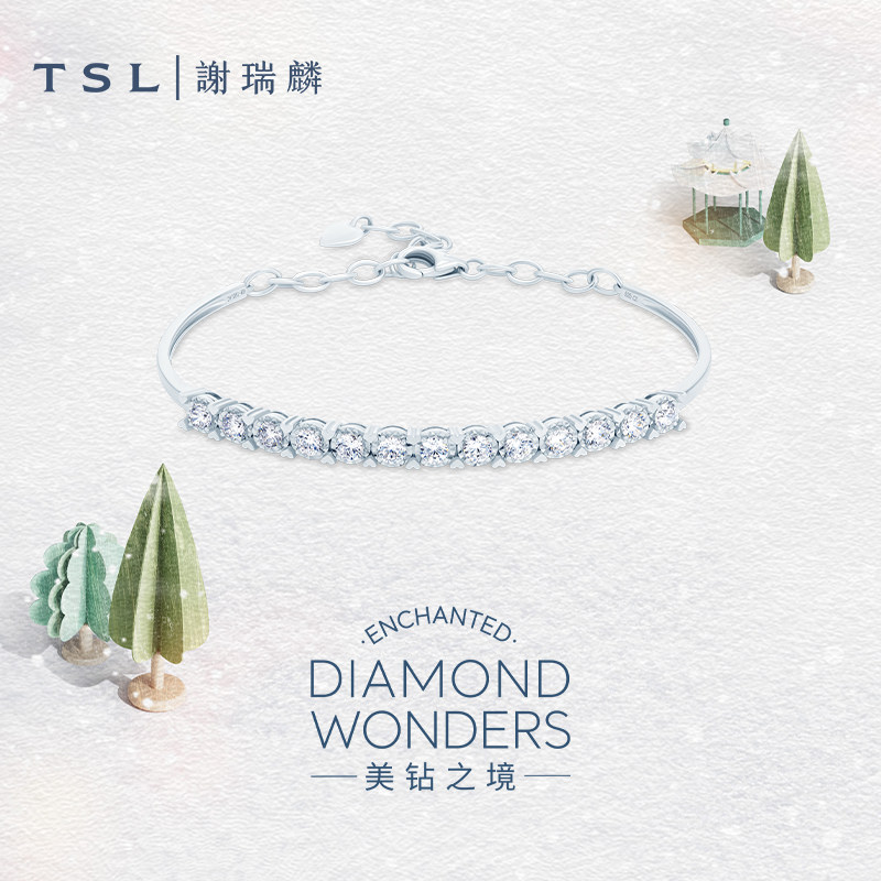 TSL谢瑞麟商场同款18K金钻石手链群镶轻奢手镯新品女士63108