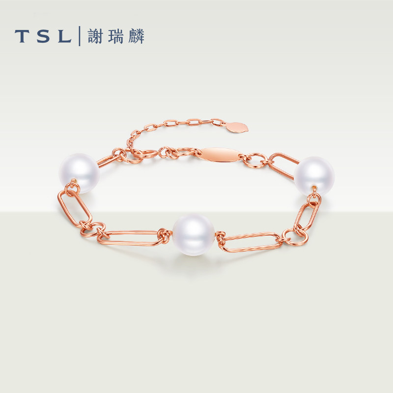 TSL谢瑞麟珍珠环扣系列18k金手链拼接款淡水珍珠女士BC920