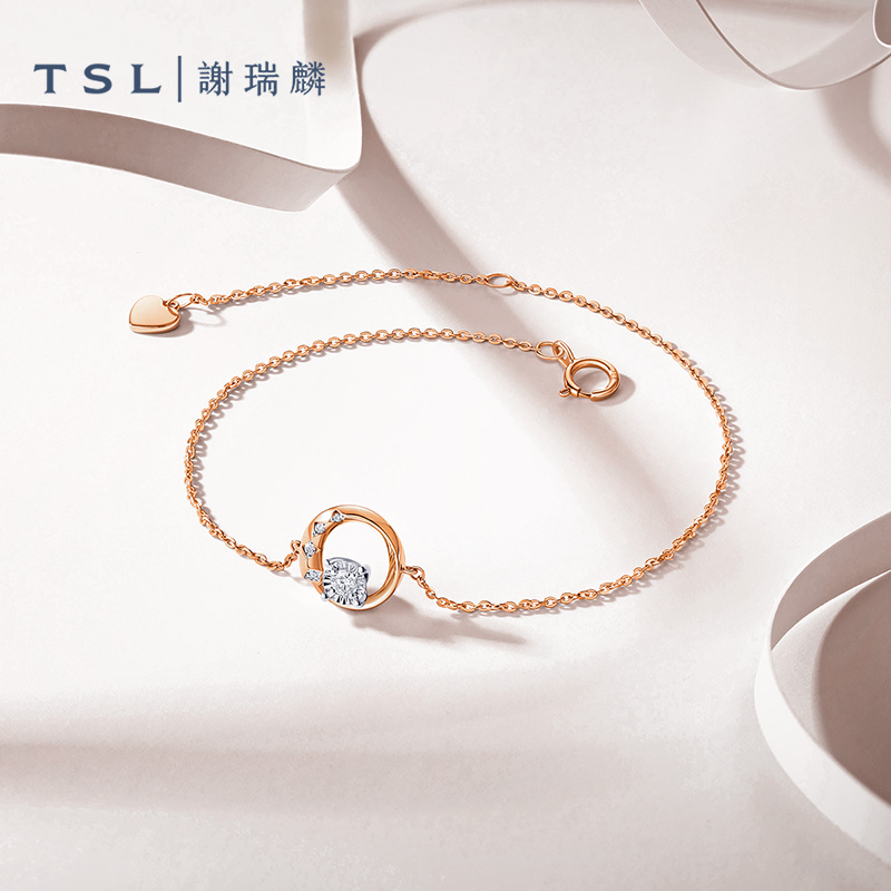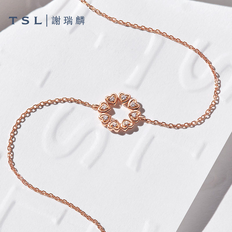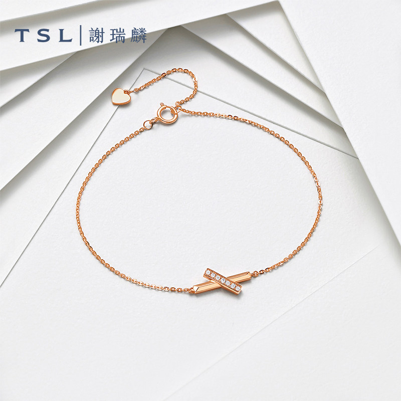 TSL谢瑞麟X系列18K金钻石手链玫瑰金手饰简约ins新品女士BD198