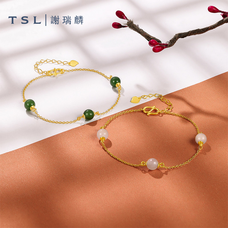 TSL谢瑞麟和田玉黄金手链白玉碧玉简约素链新品女X5128-X5129