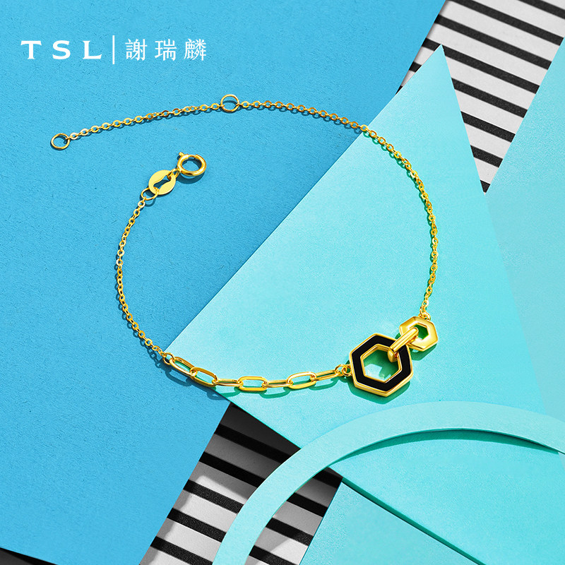 TSL谢瑞麟蜂巢系列18K金手链镶嵌黑玛瑙六边形手饰新品女士AH284