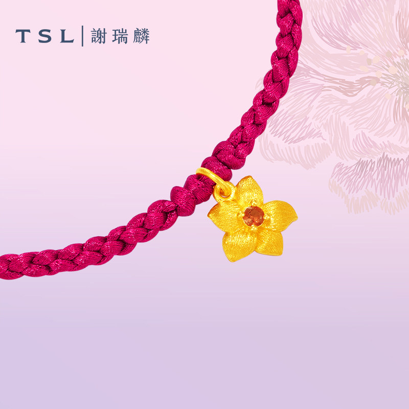 TSL谢瑞麟非遗苏绣锦绣繁花黄金手链橙色蓝宝石配红手绳X5200