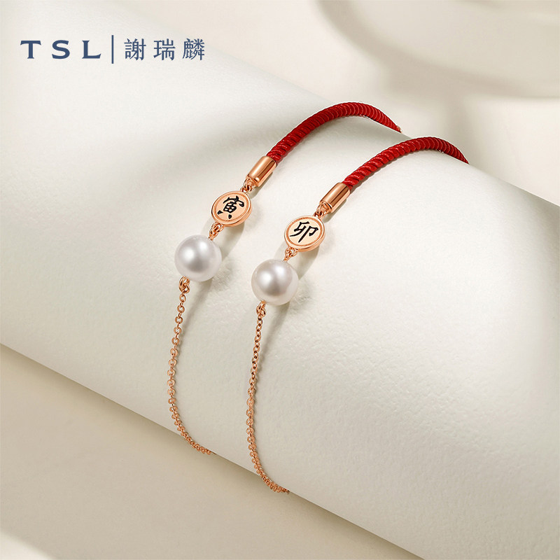 TSL谢瑞麟悦己系列18k金手链珍珠兔年本命年红手绳BC751-BD180