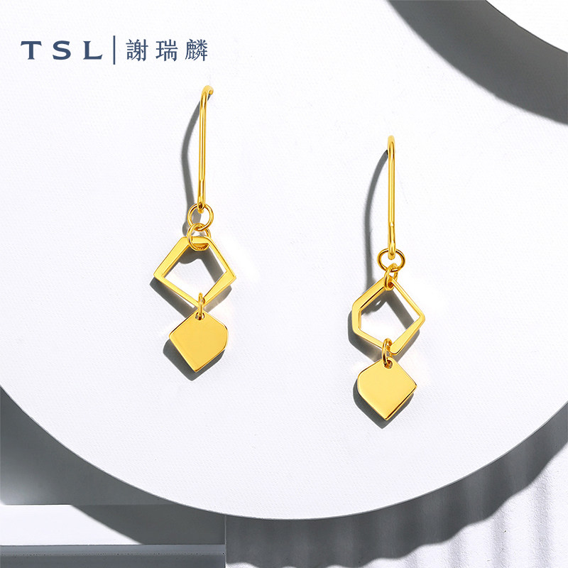 TSL谢瑞麟几何系列黄金耳环5G金工艺女士黄金X4656