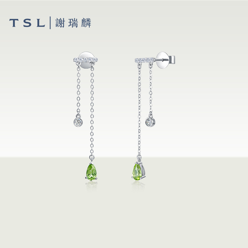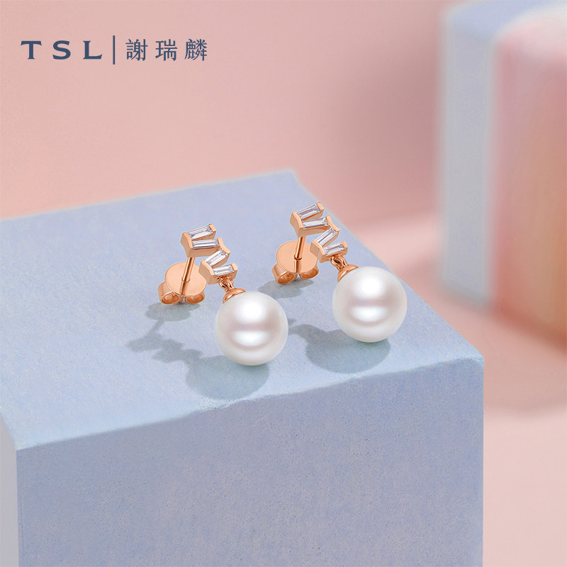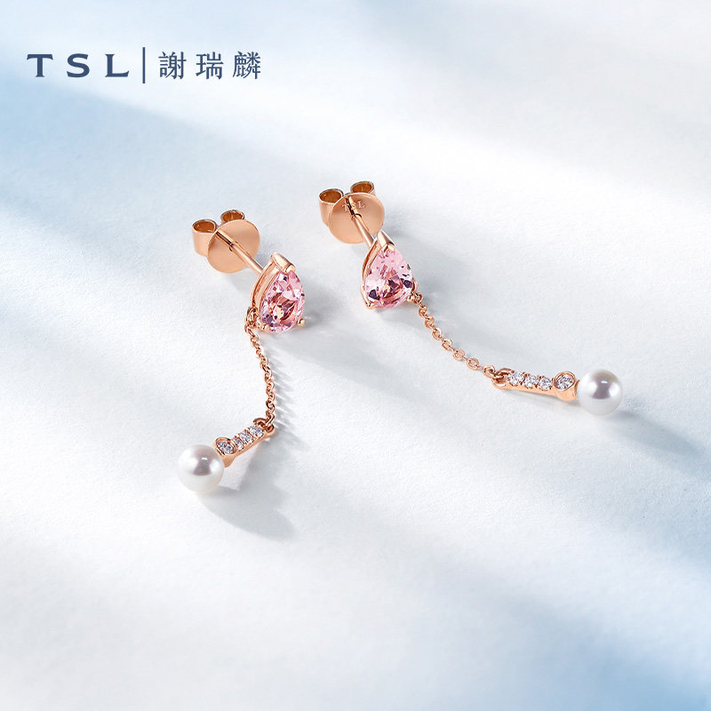 TSL谢瑞麟珍宝系列18K金摩根石耳线淡水珍珠镶嵌钻石耳饰BC901