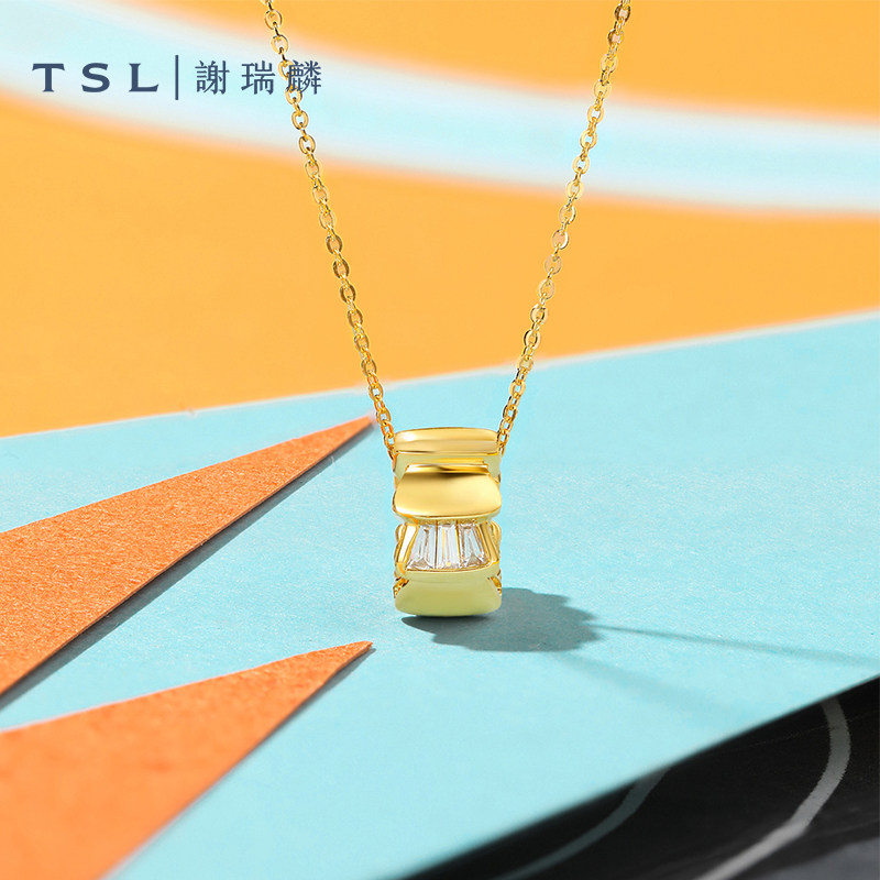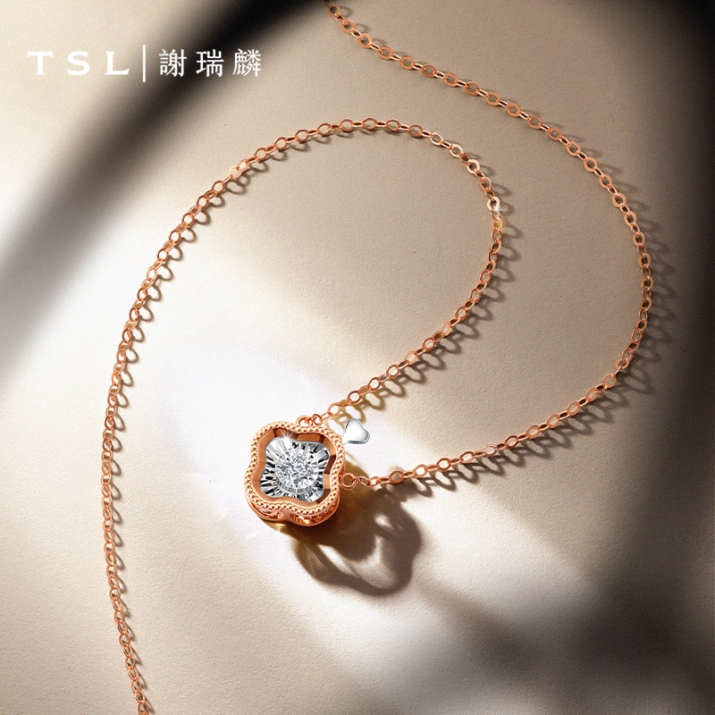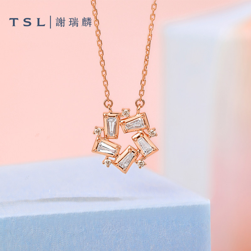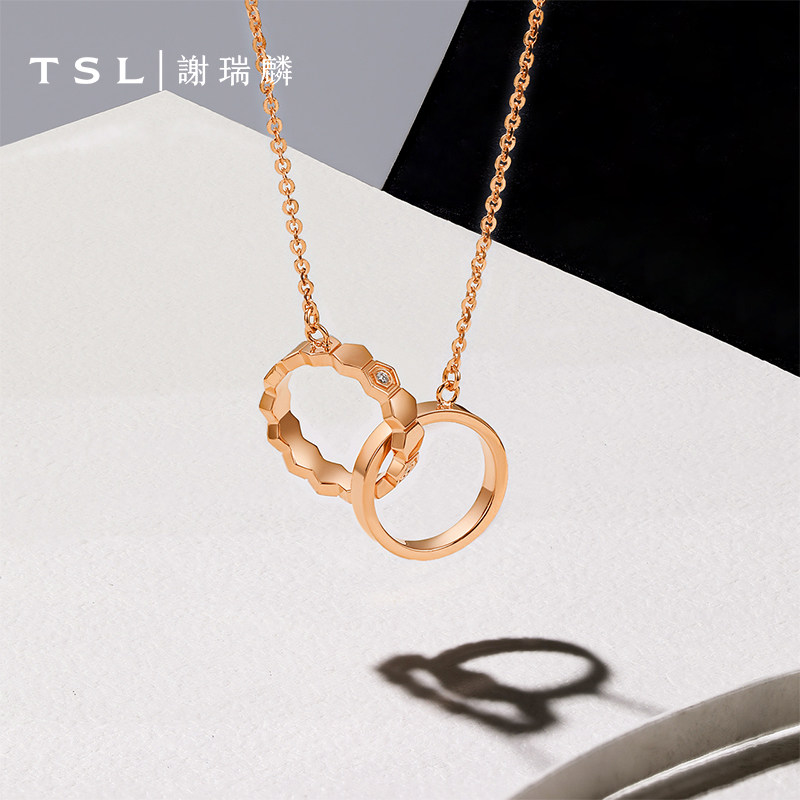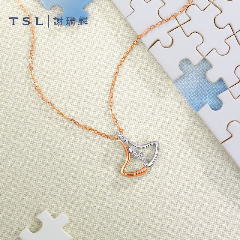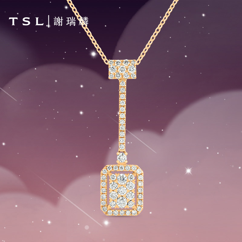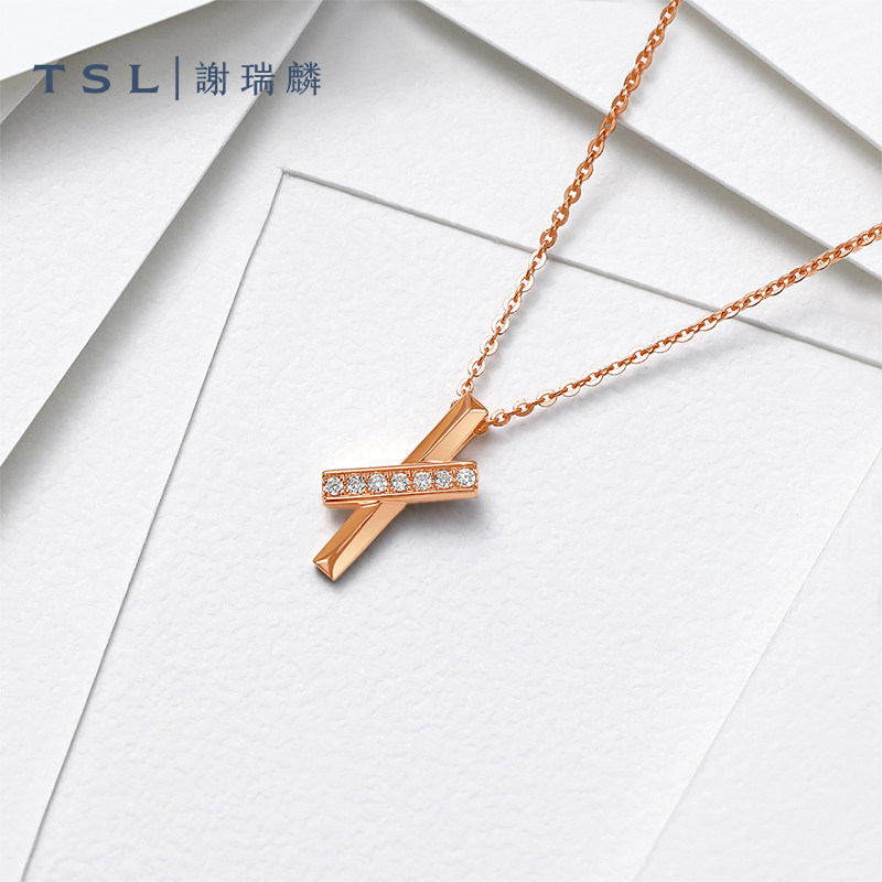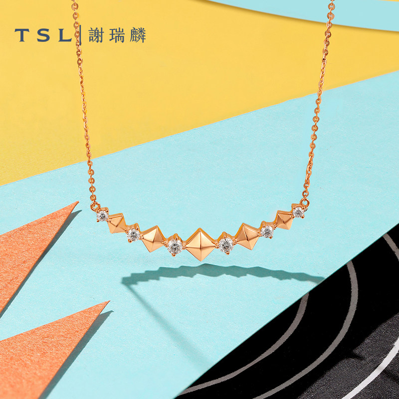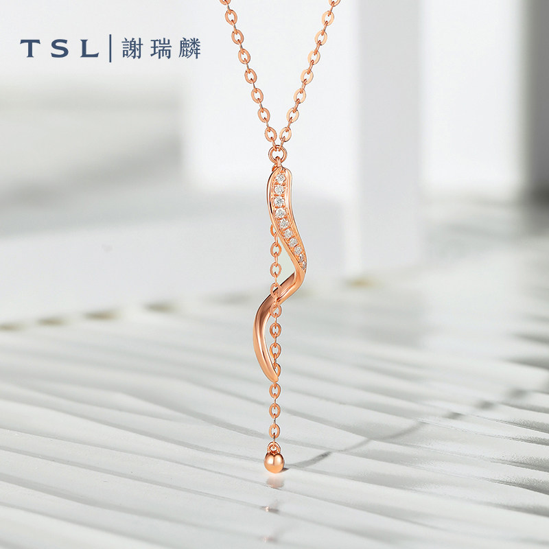 TSL谢瑞麟18K金钻石项链线条设计简约款玫瑰金套链女士新品BD785