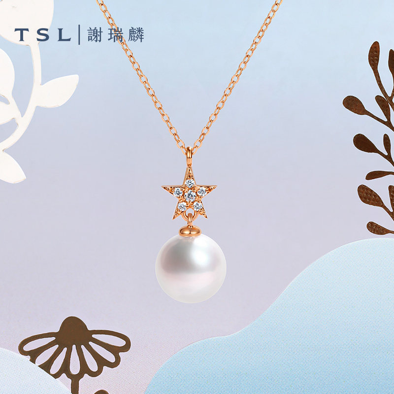 TSL谢瑞麟流光AKOYA系列18K金镶嵌钻石项链星星复古海水珍珠BD463