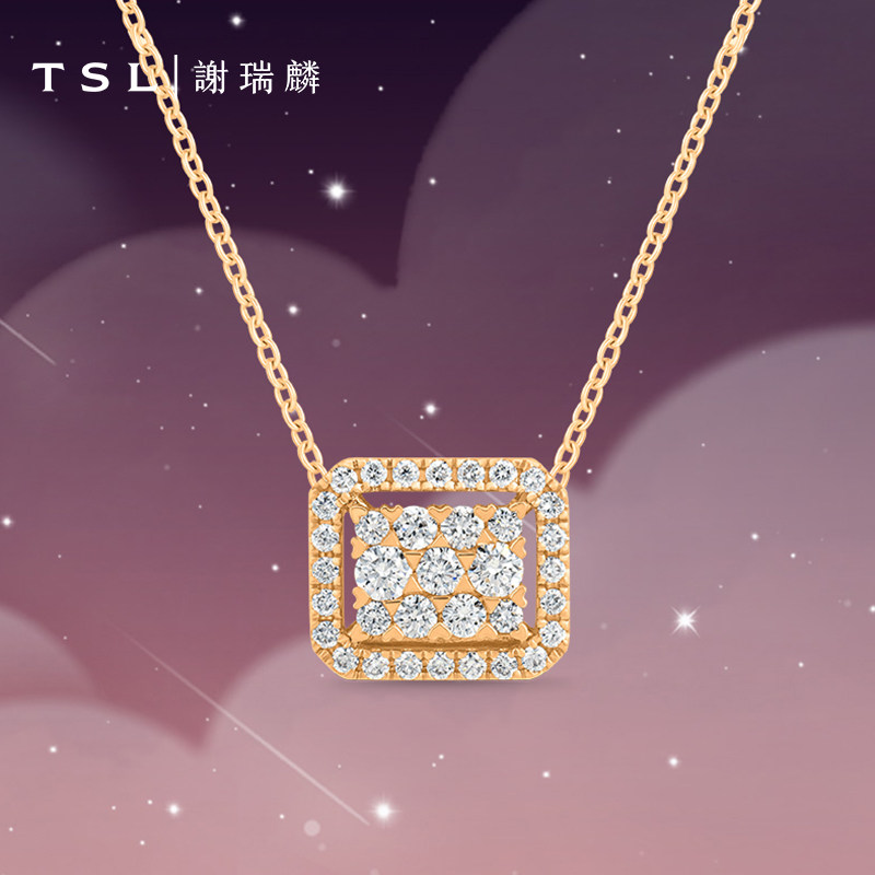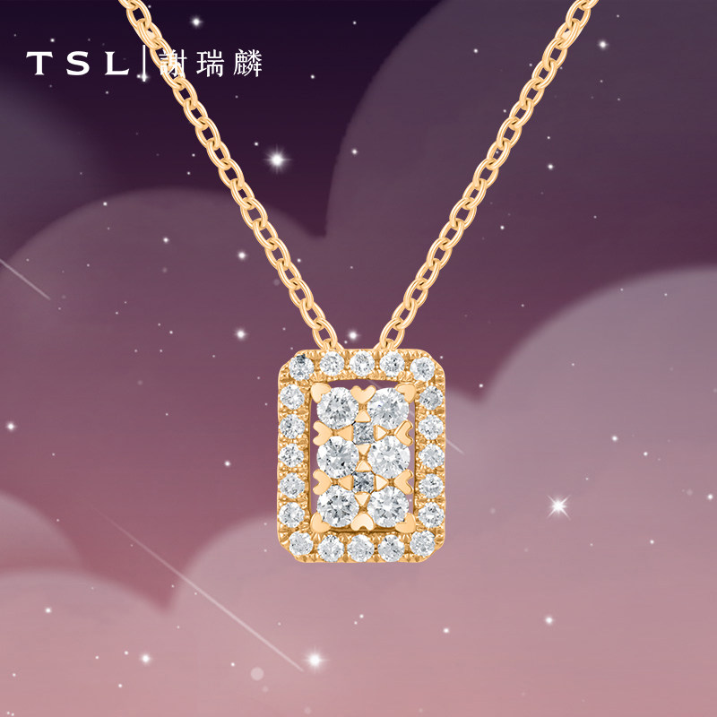 TSL谢瑞麟悦己系列18K金钻石项链方形镶嵌钻石套链女士BD054