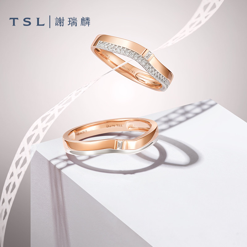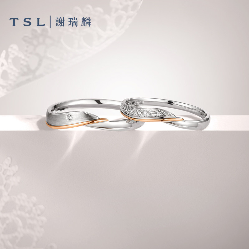 TSL谢瑞麟18K金情侣对戒扭结钻石结婚戒指新品彩金BD103-BD104