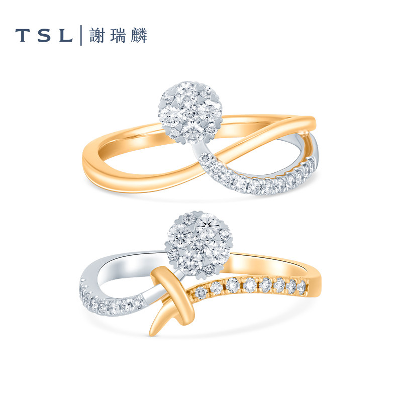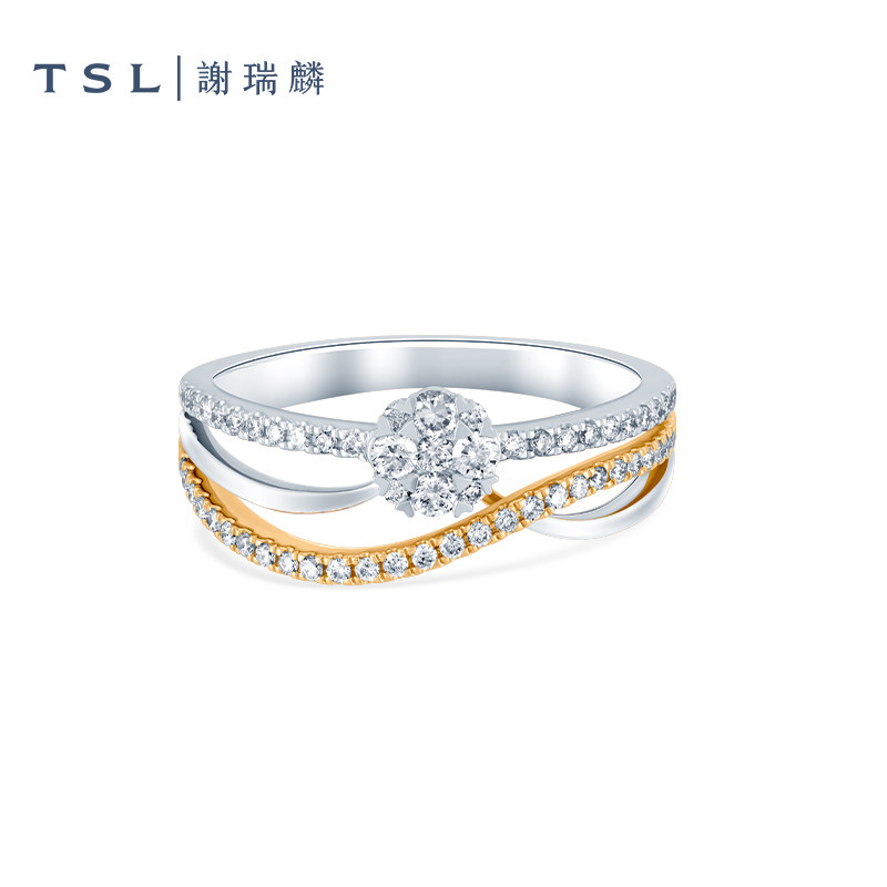 TSL谢瑞麟满心花钻系列18K金钻石戒指轻奢双色指环商场同款62927