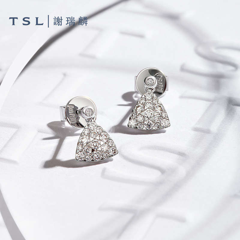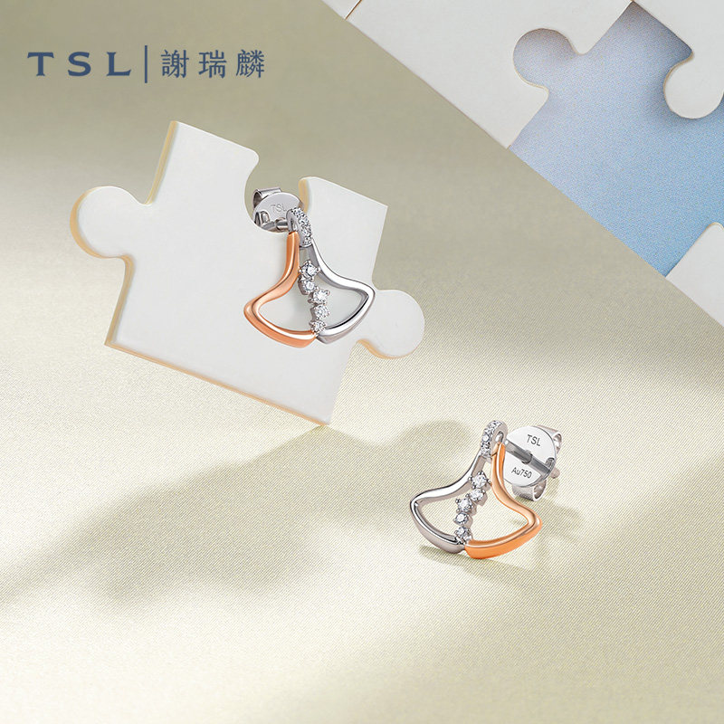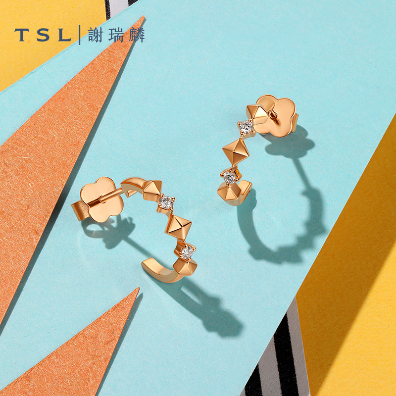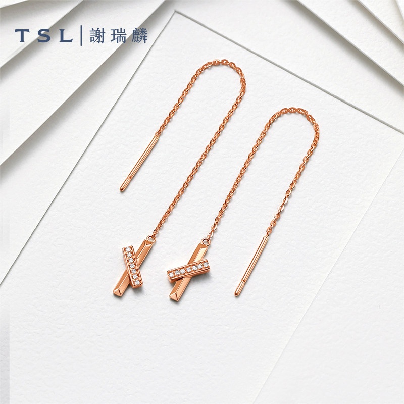 TSL谢瑞麟X系列18K金钻石耳线玫瑰金耳饰简约ins女士BD199