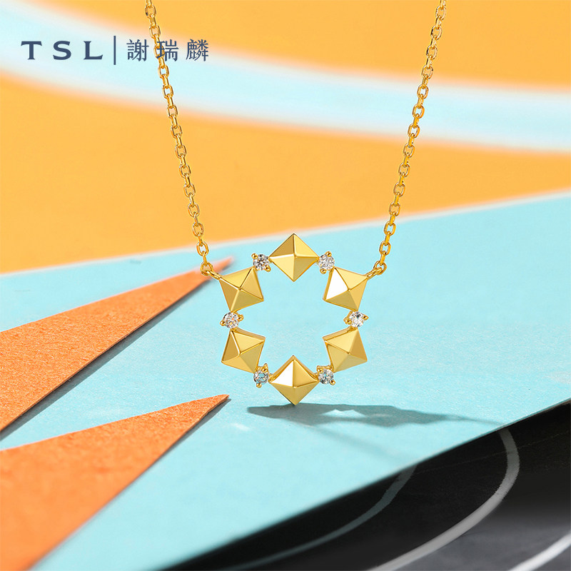 TSL谢瑞麟 TOSI舞动系列18k金菱形圆形钻石项链套链BC809-810