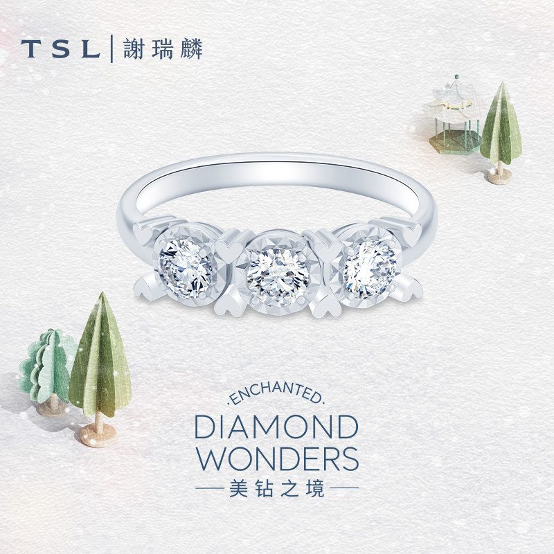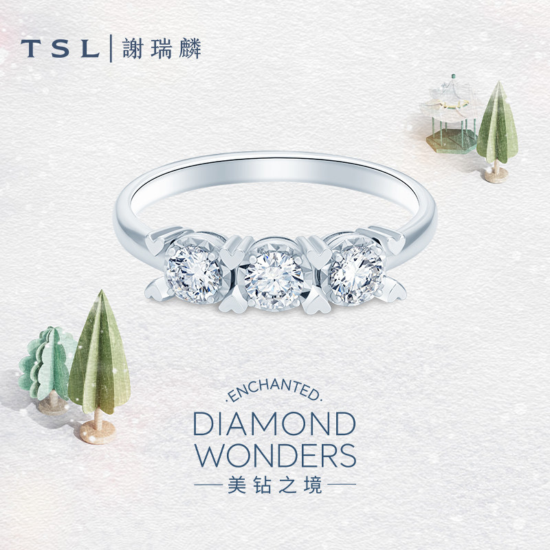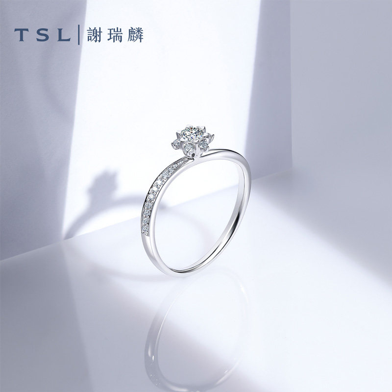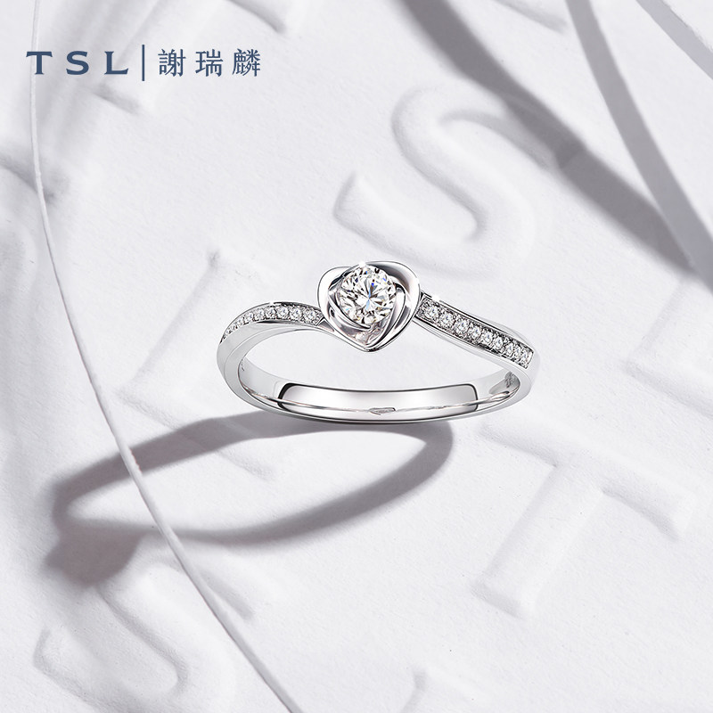 TSL谢瑞麟爱心18K白金钻石结婚戒指环戒指女轻奢新品BA899