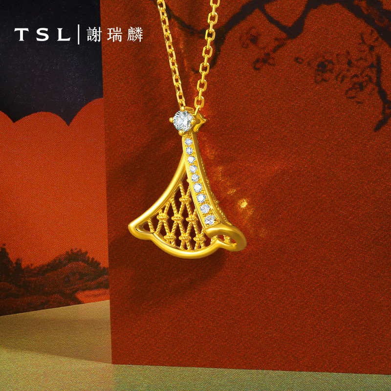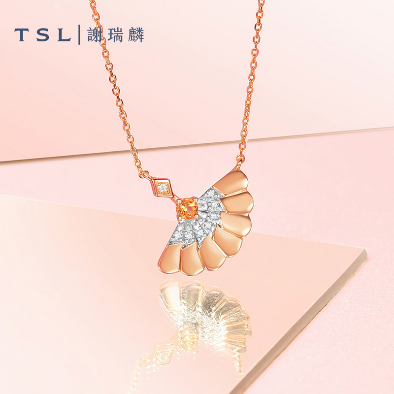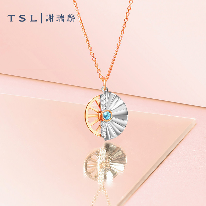 TSL谢瑞麟玲珑扇系列18K金钻石项链圆形可旋转双色托帕石女BD225