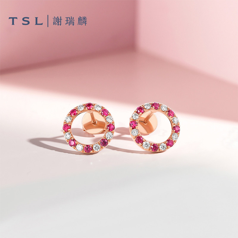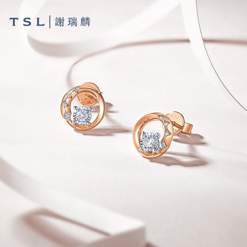 TSL谢瑞麟流星系列18K金钻石耳钉玫瑰金圆形镶钻耳饰女新品BD355