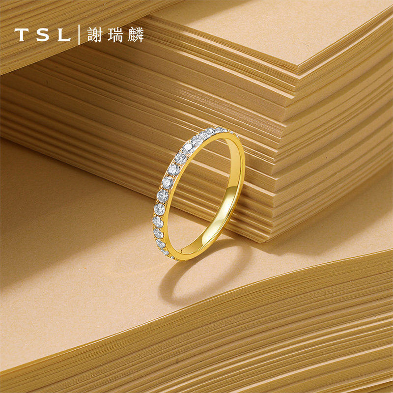 TSL谢瑞麟18k金钻石排戒钻石K黄群镶指环轻奢女士戒指新品BC925