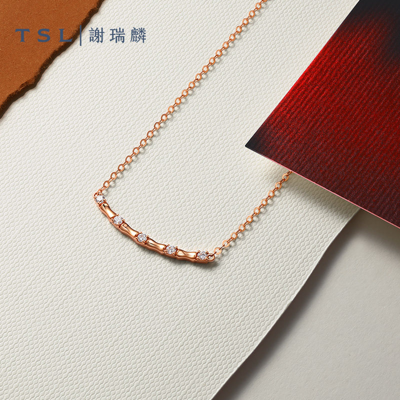 TSL谢瑞麟国风竹节系列18K金钻石项链竹节玫瑰金锁骨链新品BD526