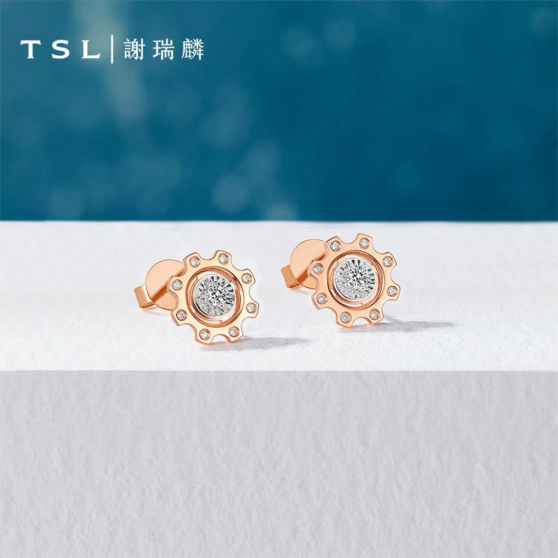 TSL谢瑞麟Love Gears爱的齿轮系列18K金钻石耳钉耳饰女新品BD289