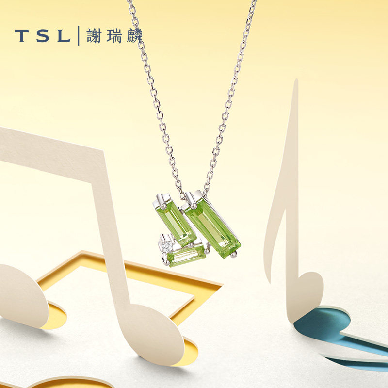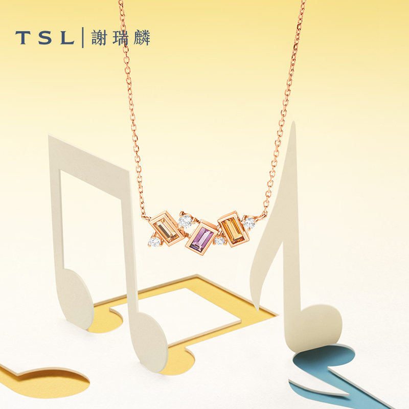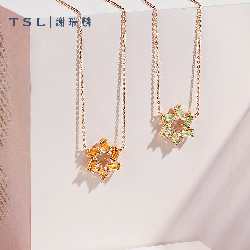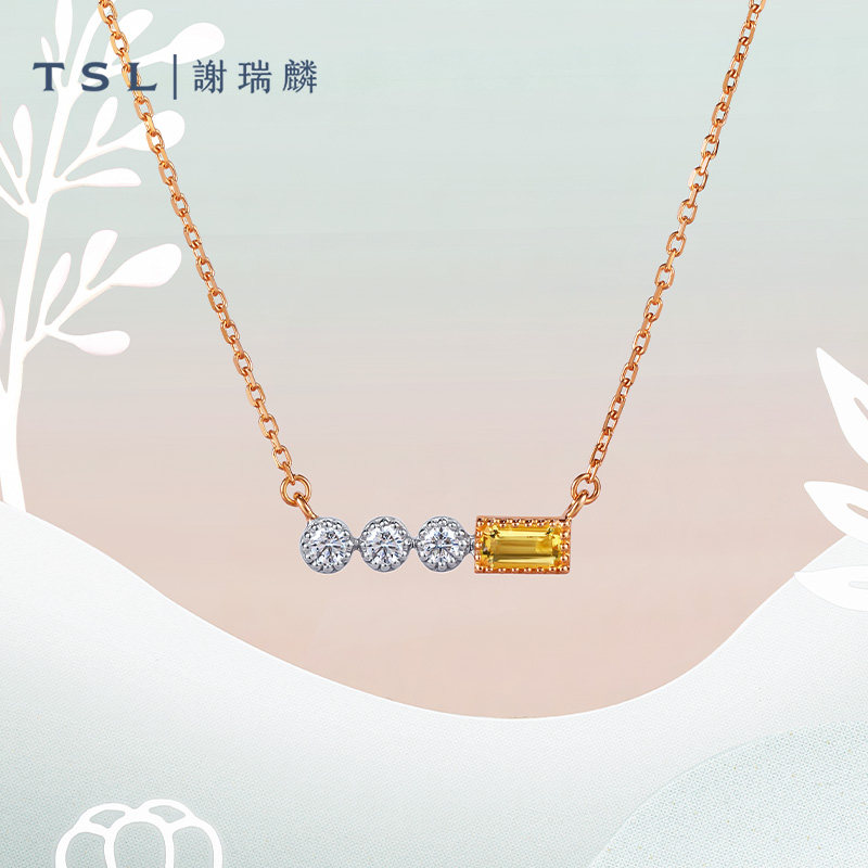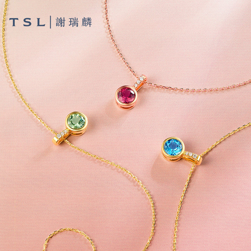 TSL谢瑞麟炫彩系列18K金彩宝钻石项链镶嵌碧玺托帕石BD336-BD338