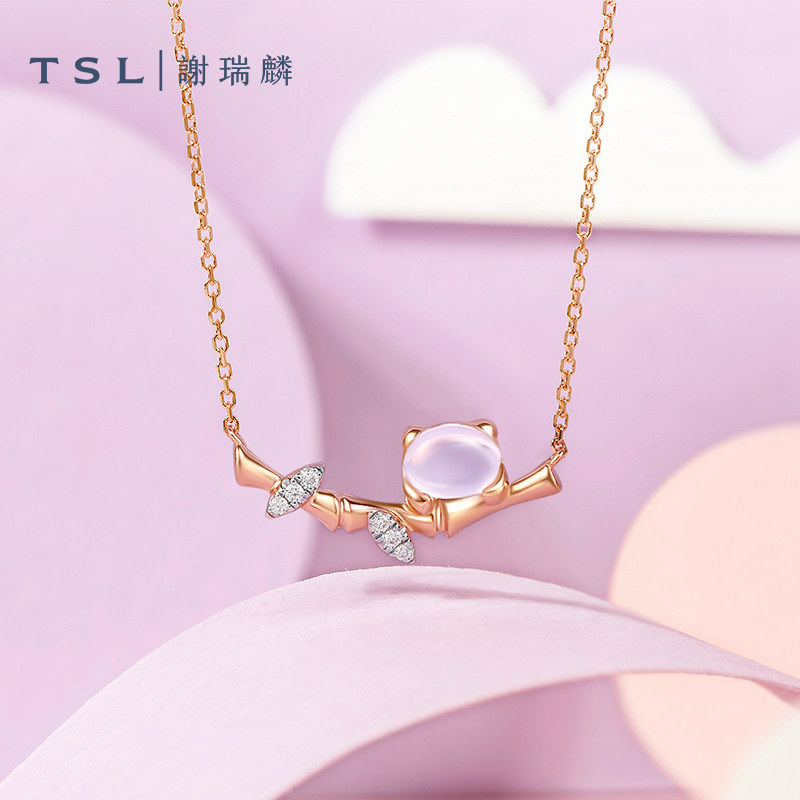 TSL谢瑞麟熊猫萌宠系列18K金钻石项链白水晶套链新品BE283