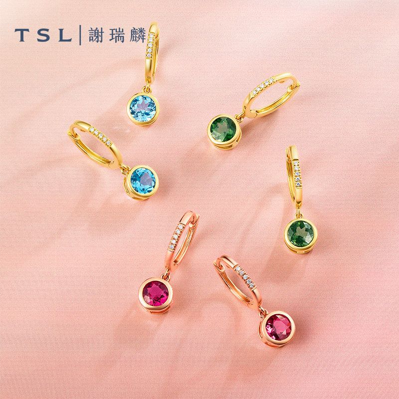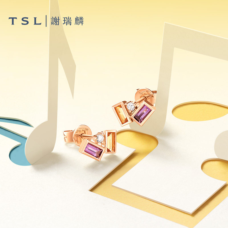 TSL谢瑞麟彩宝系列18K金钻石耳钉镶嵌紫水晶黄水晶BD046