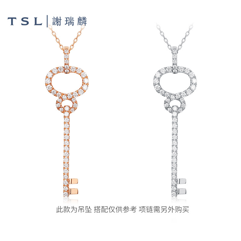 TSL谢瑞麟幸运守护系列18K金钻石吊坠钥匙女新品挂坠不含链61087