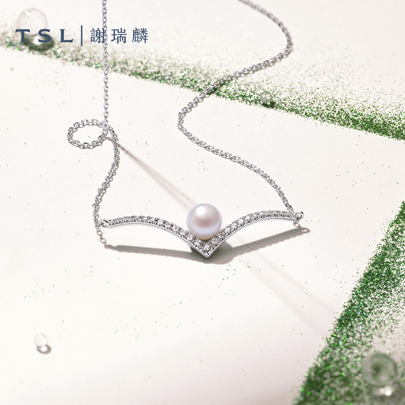 TSL谢瑞麟流光AKOYA系列海水珍珠18K金钻石项链镶嵌钻石套链BD465