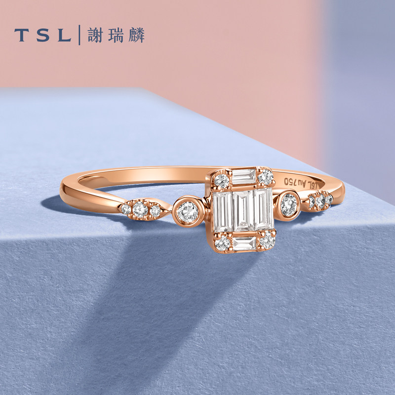TSL谢瑞麟18K金钻石戒指情侣对戒方钻结婚BC840-841