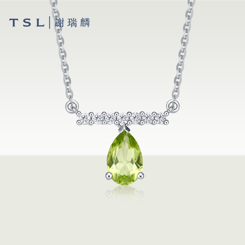 【百亿补贴】TSL谢瑞麟冰蓝甜心系列18K金钻石项链托帕石BD175