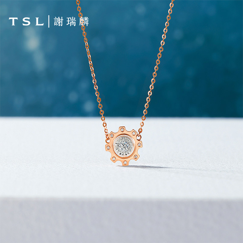 TSL谢瑞麟Love Gears爱的齿轮系列18K金钻石项链镶嵌女套链BD287