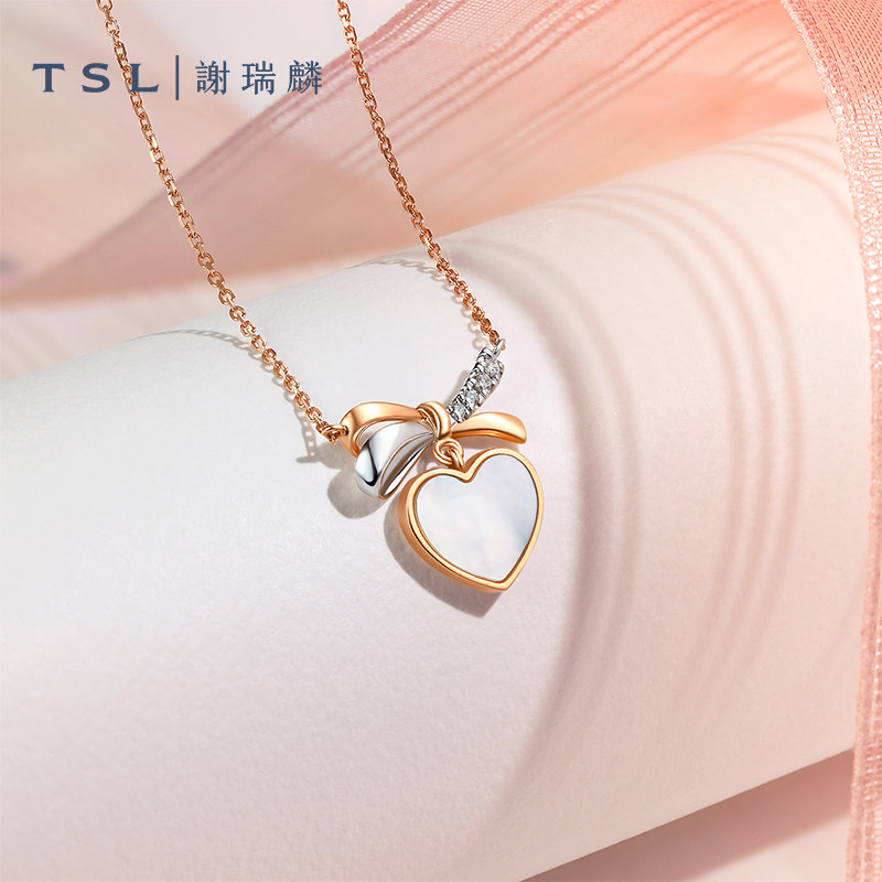 TSL谢瑞麟浪漫礼结系列18K金钻石项链爱心白贝母镶钻套链BE280