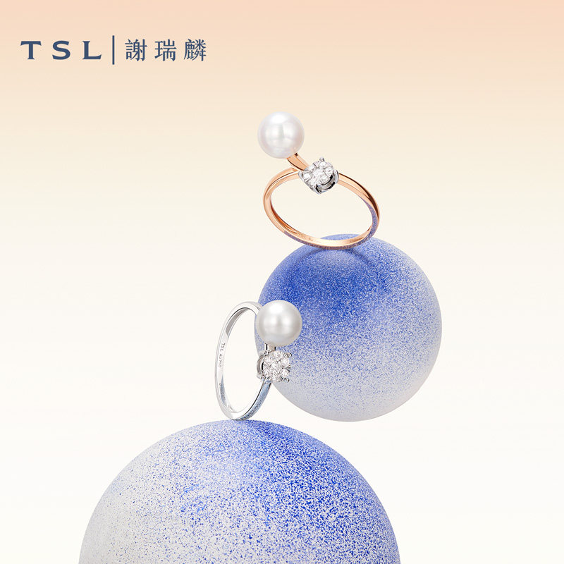 TSL谢瑞麟18k金钻石戒指珍珠玫瑰金优雅珍珠指环女士BC852