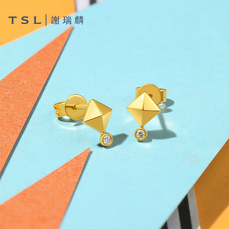 TSL谢瑞麟铆钉系列18K金钻石耳钉K黄耳饰耳环女士新品BE287