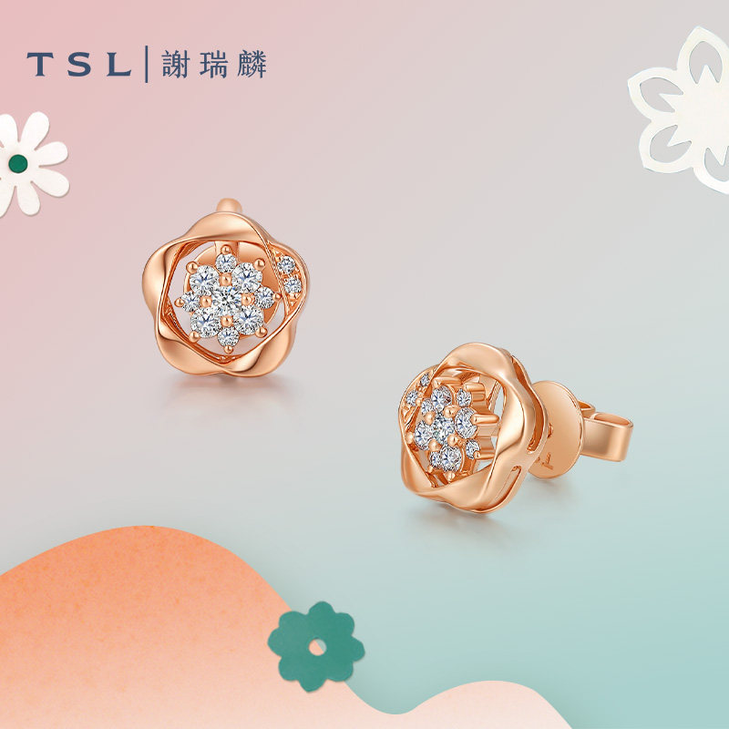 TSL谢瑞麟雪花系列18K金钻石耳钉一款多戴耳饰新品女玫瑰金BD379
