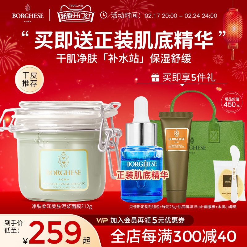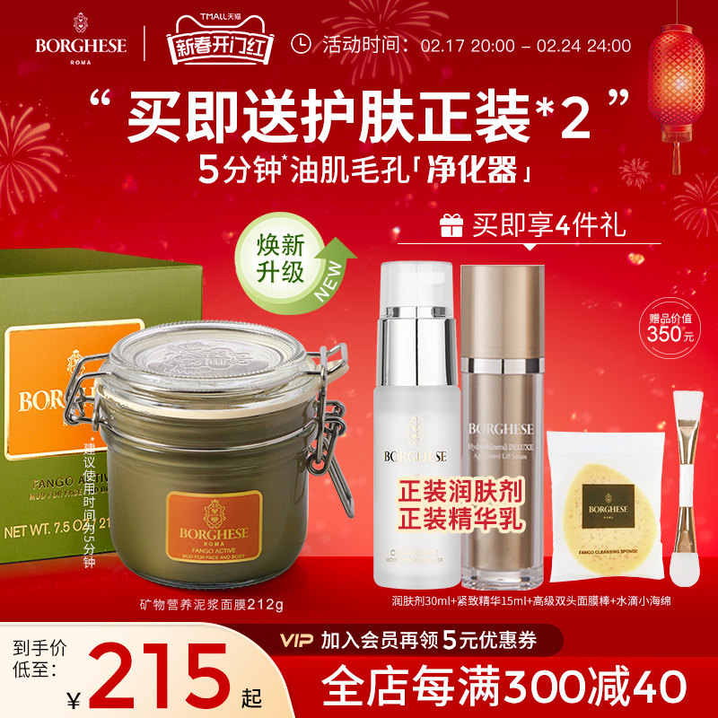 Borghese/贝佳斯白泥清洁面膜涂抹泥膜温和清洁毛孔护肤官方正品
