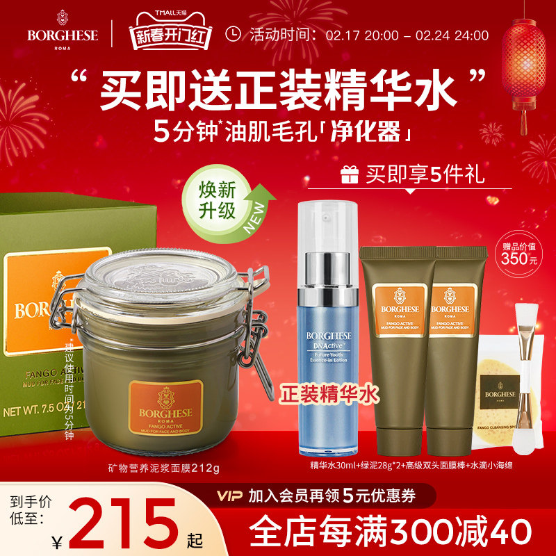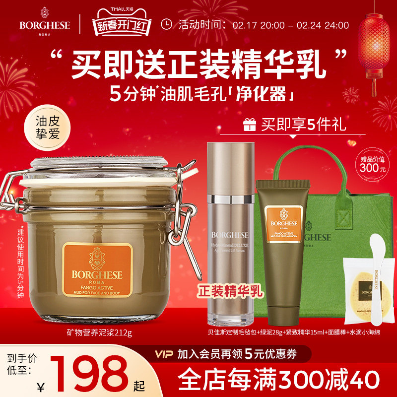 Borghese/贝佳斯白泥面膜深层清洁控油涂抹式泥膜正品212g