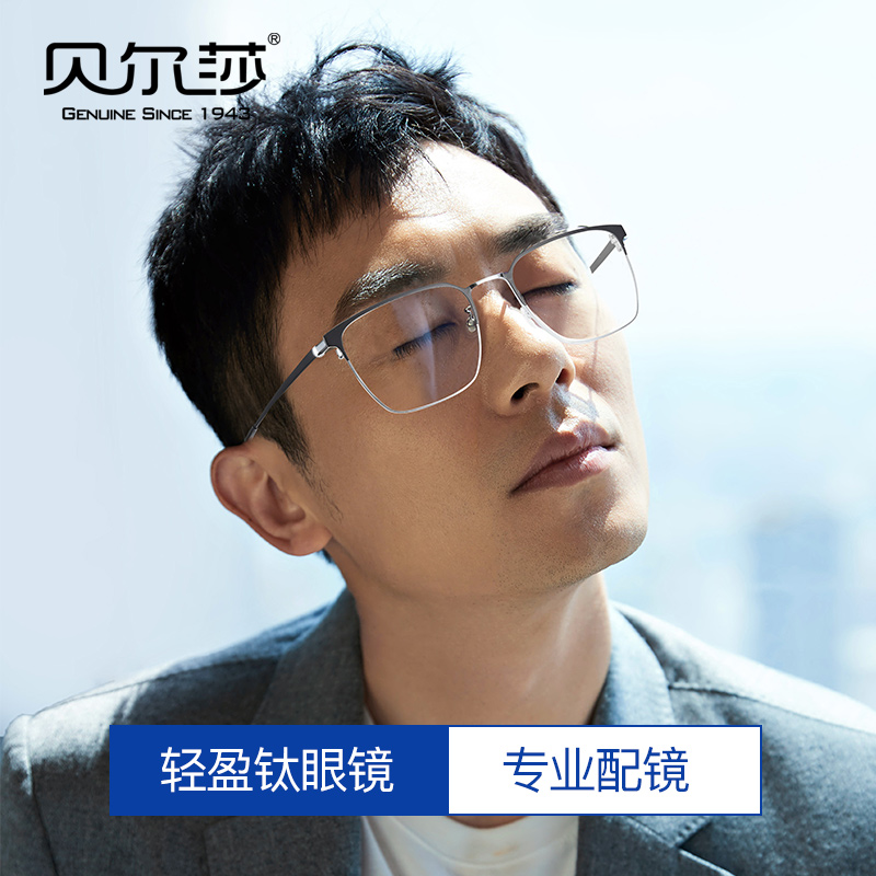 贝尔莎眼镜架纯钛近视半框商务防蓝光可配有度数变色眼睛散光
