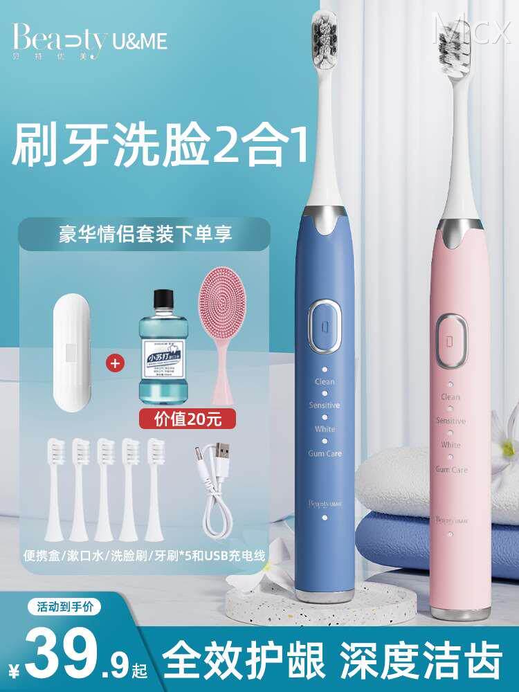 贝特优美电动牙刷全自动成人声波充电式男女情侣牙刷套装防水软毛