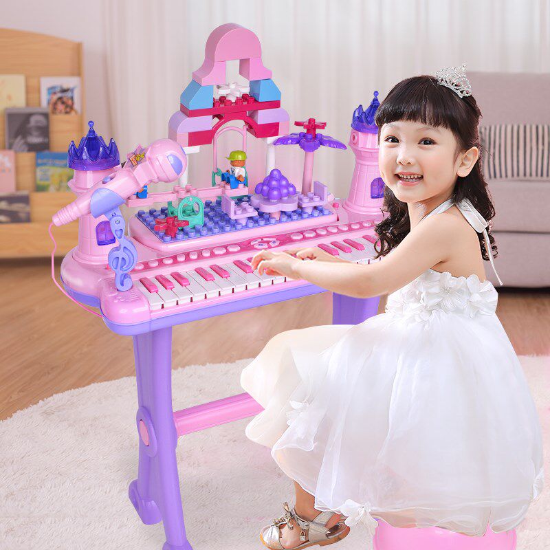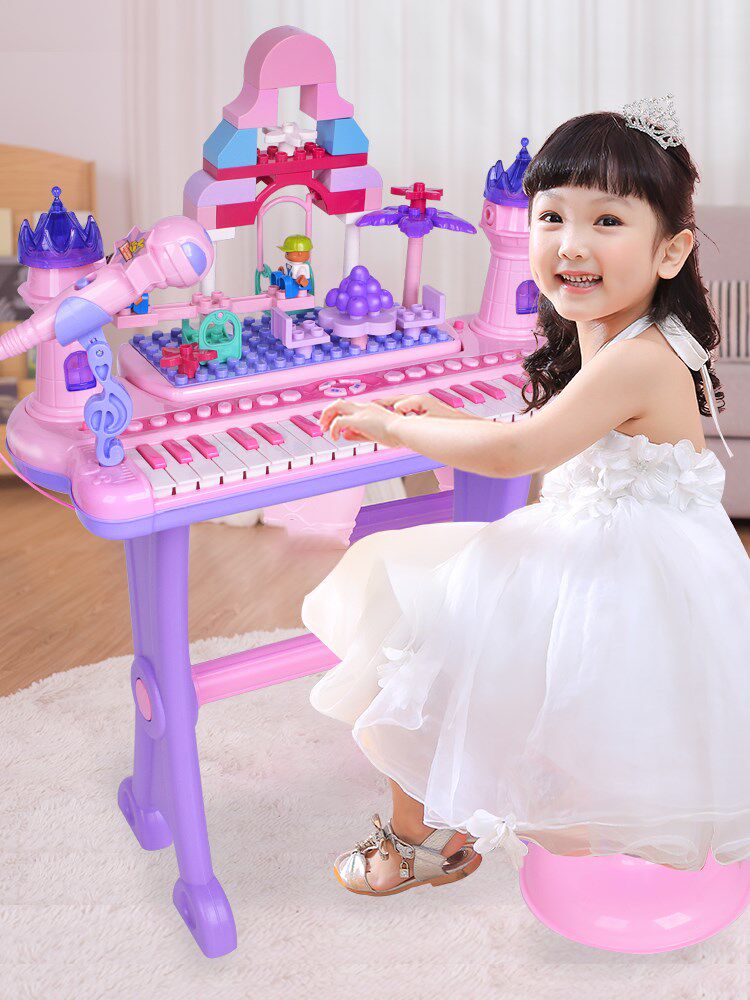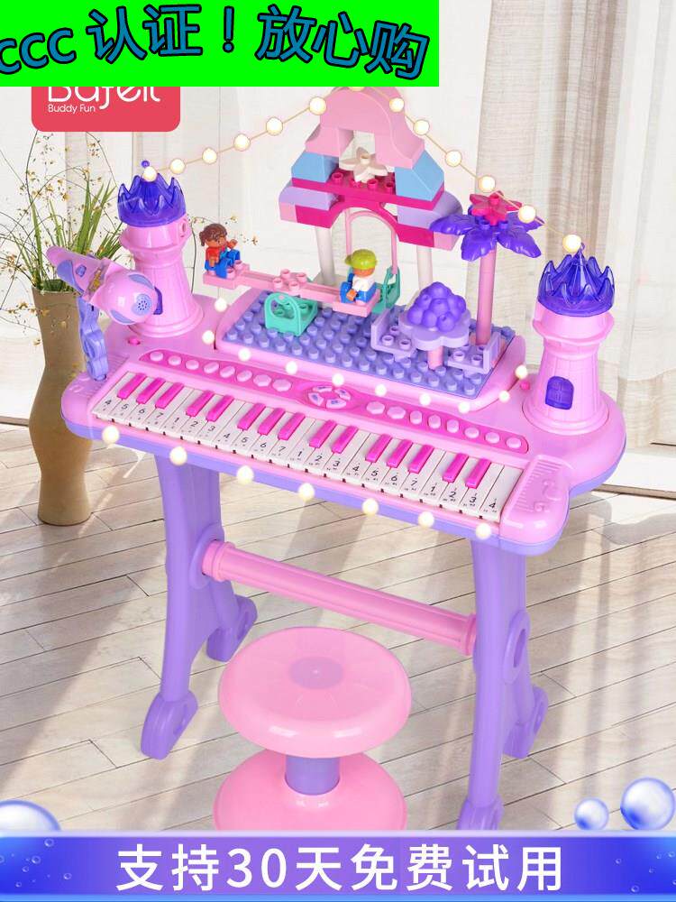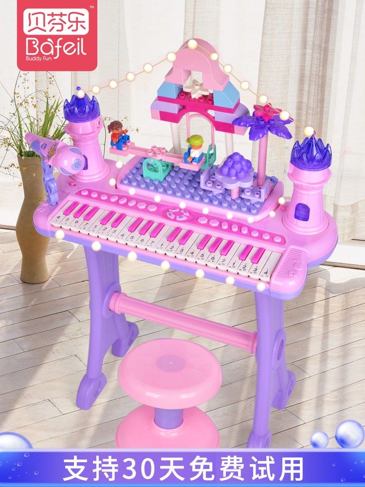 贝芬乐儿童积木电子琴带麦克风3女孩玩具6岁1初学者大号钢琴键'